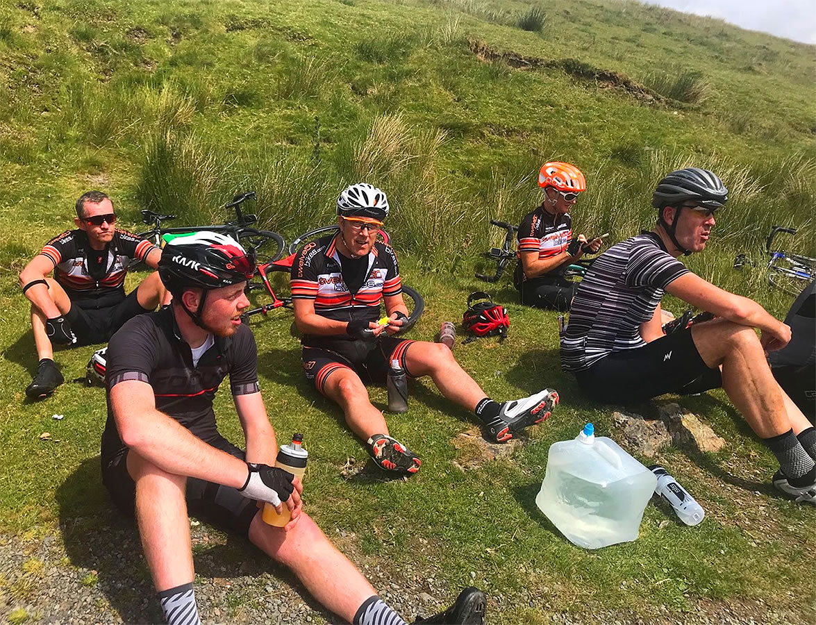 To all our fundraisers in particular Chris Hanson-Jones and Danny Emmett for liaising with Halton Haven, all our sponsors, fellow Wheelers, the staff at Halton Haven for your great work, your support for our event and finally and not least the riders (as they say in no particular order) – Martin Sam Geer (2 epics in 2 weeks), Nathan Morgan-Astle (such strength and enthusiasm for the epic climb!), Robert Macleod (dug in!), Stephen Wright (Tom Dumoulin… for all the right reasons), Chris Hanson-Jones (Thanks for all sponsorship from Viridor), Alan Orme (needed that spinny gear eh Al), Brigid Wilde (workhorse on the front), Dianne Turner (rocking that white kit), James ‘2 Pizzas’ Male, Danny Emmett (thanks for your rear gunner support mate), Chris ‘2 minutes late’ Fowler, Stuart Lloyd (without the aid of a backpack), Kevin Sales (super strong), Peter Prince (no denim?), Sarah Illidge (Used it ‘as training’!), Aidan ‘The Tan’ Warder, Dan ‘The Regular’ Walker, Ian Craig (Liverpool Century), Dean Smith (forget the Shoe, finished strong!), myself the slightly hoarse and time obsessed organiser and finally, an inspiration to us all, Gaz Minnis who rode under very difficult circumstances but rode with great spirit and strength. We salute you Gaz!