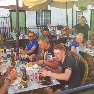 I attempted to scoop the entire contents of a tub of chamois cream into my shorts and buoyed by the liquid refreshment we began the final assault up the Horseshoe Pass. Well in true lunatic style I attacked and arrived in time for a photo shoot before the group arrived. The ride back to Chester was the bumpy Llandegla route, tougher than the tradition flat Wrexham route but it gave so much more.