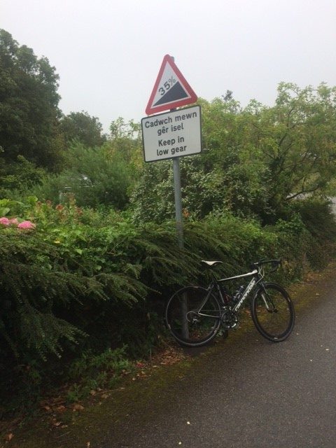 With a quick bike check the riders set off heading to the coastal town of Beaumaris. Within the first 5 minutes of riding a quick left turn off the main road took the group up a very steep 25% climb. Some were smiling and some were not as the reality of a very hilly route dawned on the riders faces. A quick drink and catch of breath, the group rode on through the showers although the temperature was warm.
